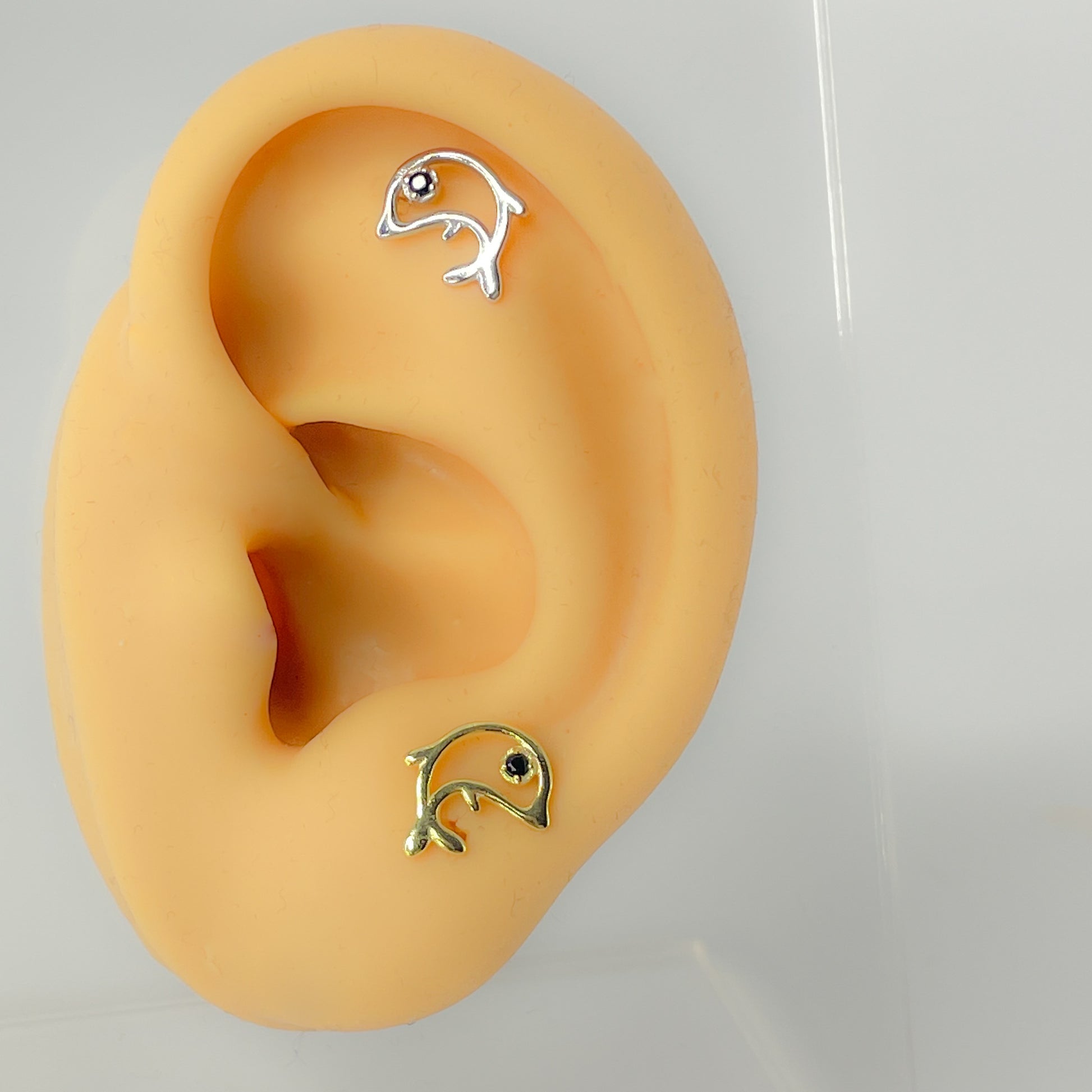 Tauche ein in die Welt der Eleganz und Symbolik mit unserem wunderschönen Delfin Helix Piercing. Hergestellt aus hochwertigem 925 Sterling Silber und veredelt mit einer 18K Vergoldung, kombiniert dieses Piercing ein zartes, verspieltes Delfin-Design mit luxuriösem Schmuckcharakter. Ideal für alle, die ein einzigartiges Piercing suchen, das gleichzeitig stilvoll und bedeutungsvoll ist.