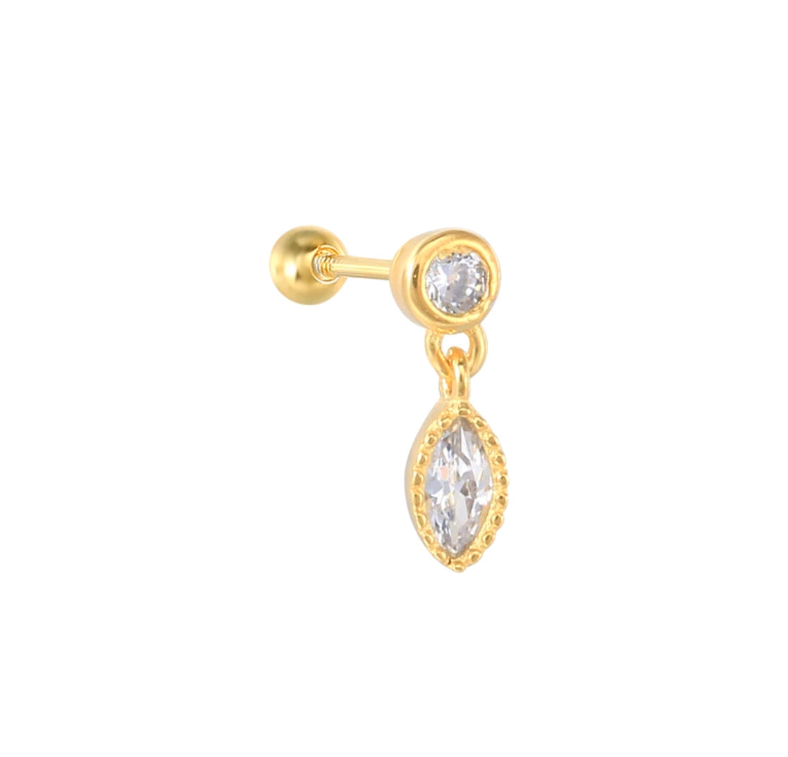 Durch die Kombination der Steinformen entsteht ein modernes, feminines Design, das sowohl einzeln als auch in Kombination mit anderen Piercings getragen werden kann.