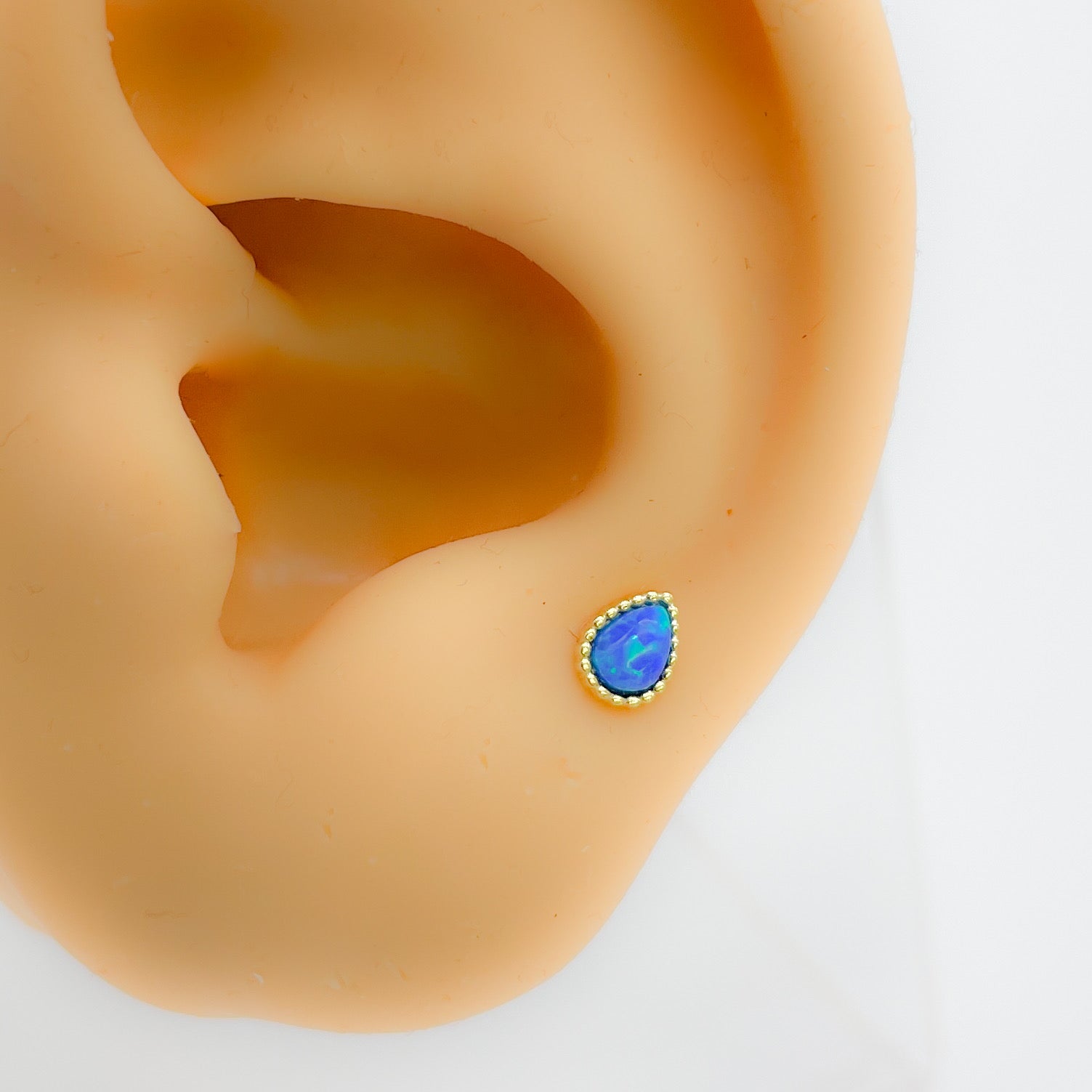 Helix-Piercing mit Tropfenförmigem Blauem Stein – 925er Silber, vergoldet