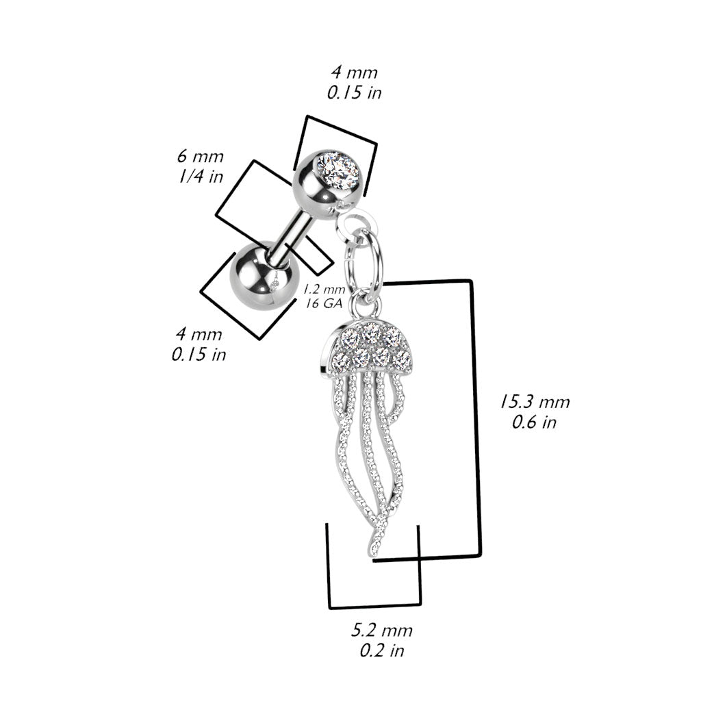 Dieses detailverliebte Helix-Piercing mit Quallen-Motiv bringt einen Hauch von Meeresmagie in deinen Look. Gefertigt aus vergoldetem 316L Chirurgenstahl ist es nicht nur optisch ein Highlight, sondern auch besonders hautfreundlich und langlebig. Die filigrane Qualle bewegt sich sanft und verleiht deinem Ohrschmuck einen verspielten, eleganten Akzent.