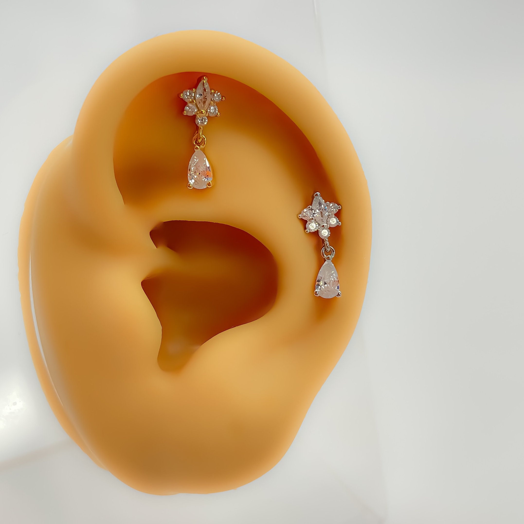 Helix Tragus Piercing 925 silver gold plated flower No. 102