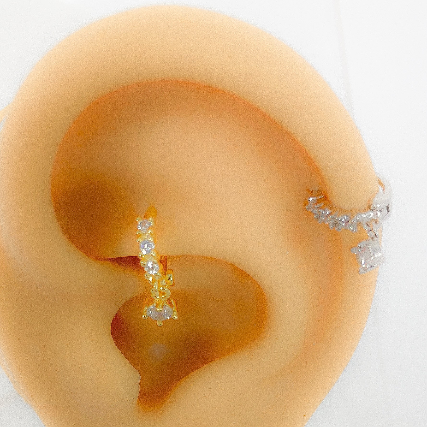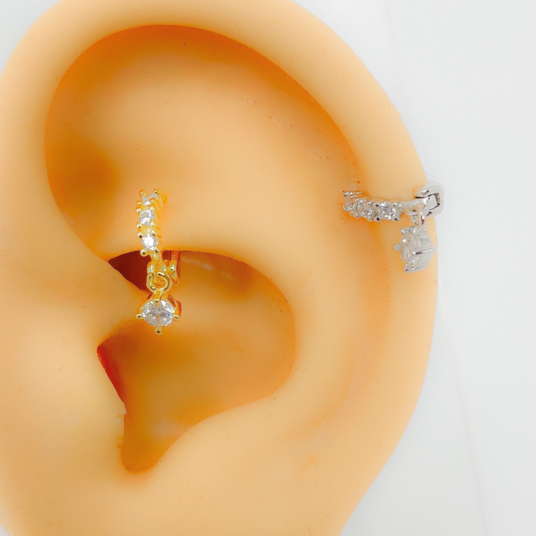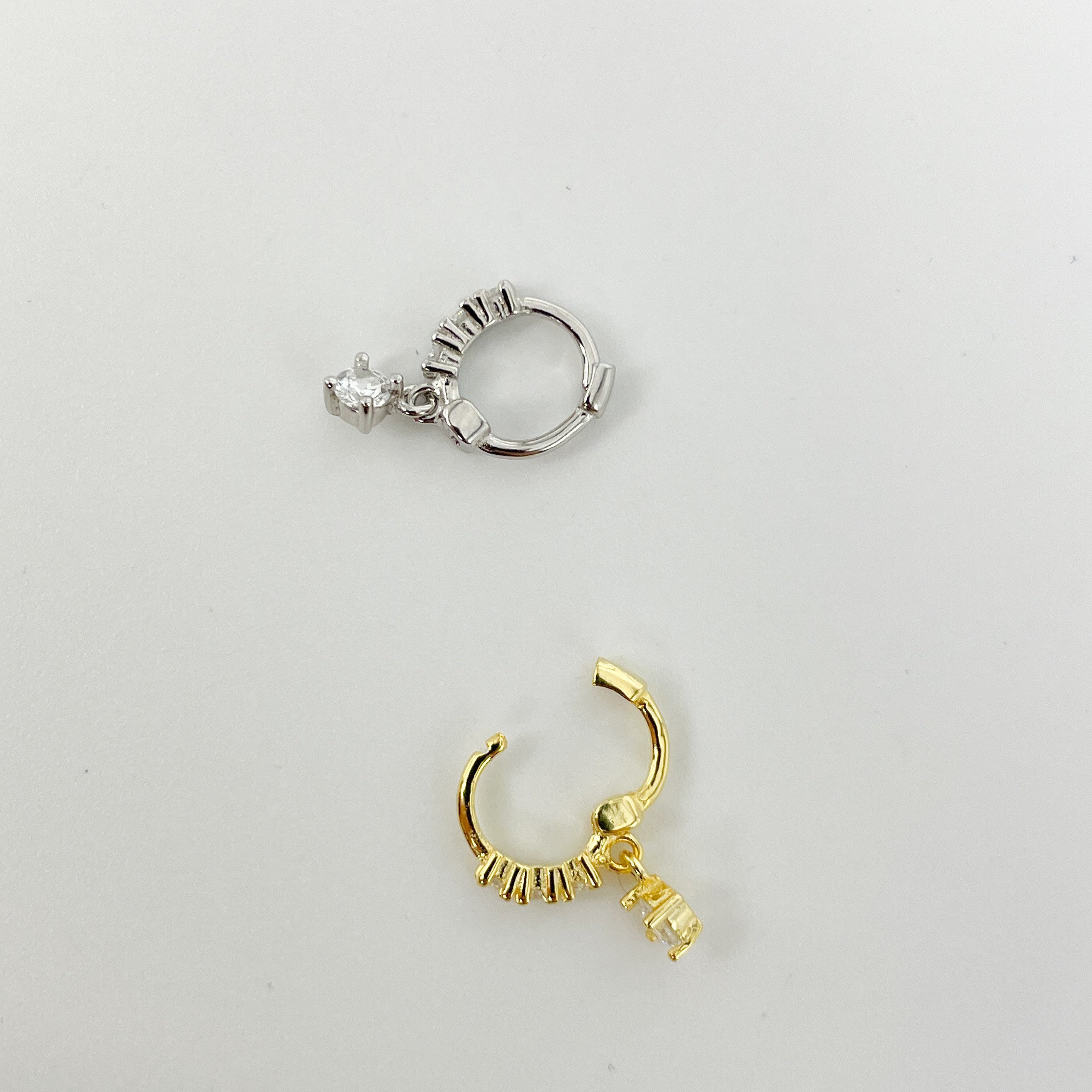 Hoop helix #153 creole piercing 925 silver gold plated cubic zirconia mini tiny round rhinestone boho vintage septum