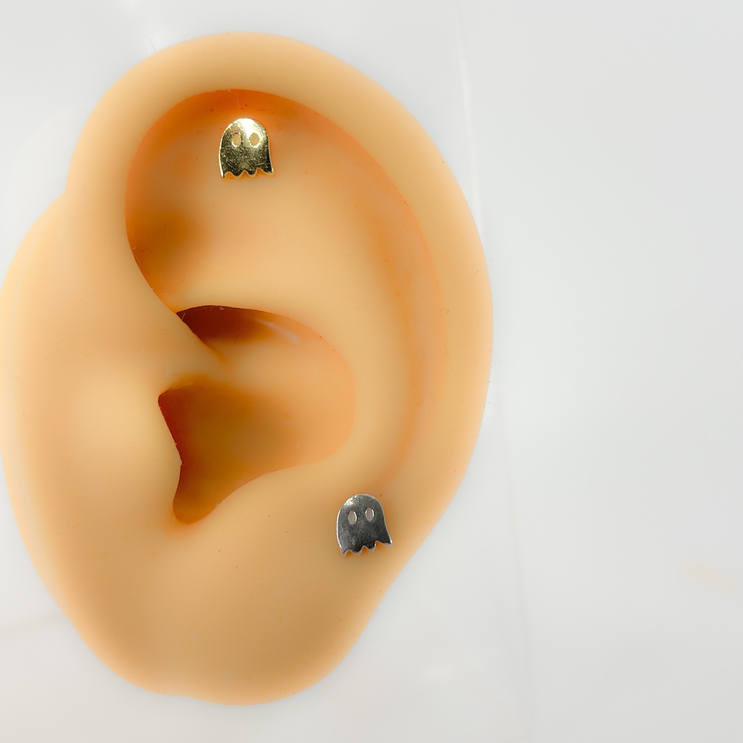 Helix #135 ghost 925 silver gold plated ghost piercing cartilage ear stud small mini