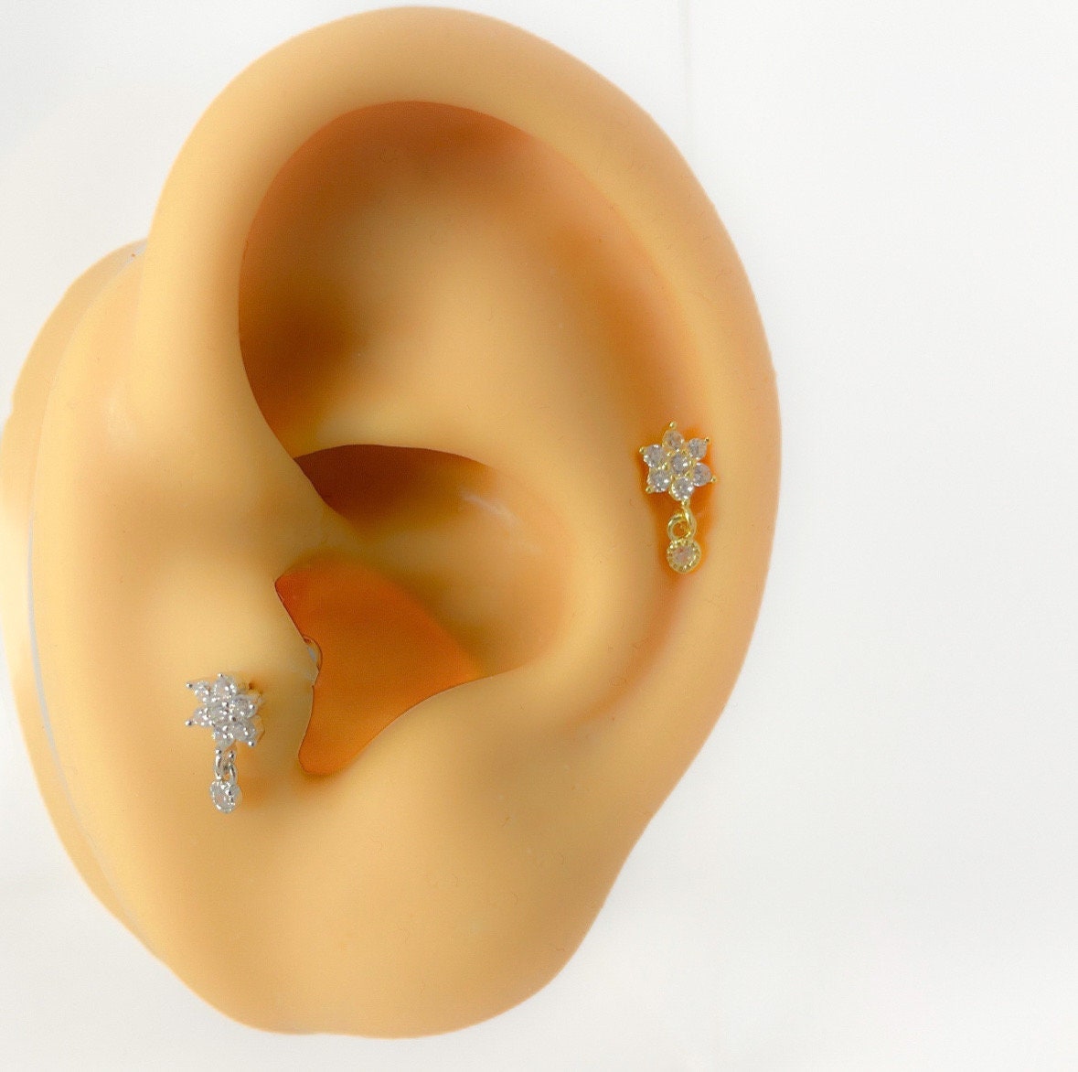 Piercing locations: Helix, tragus, upper helix