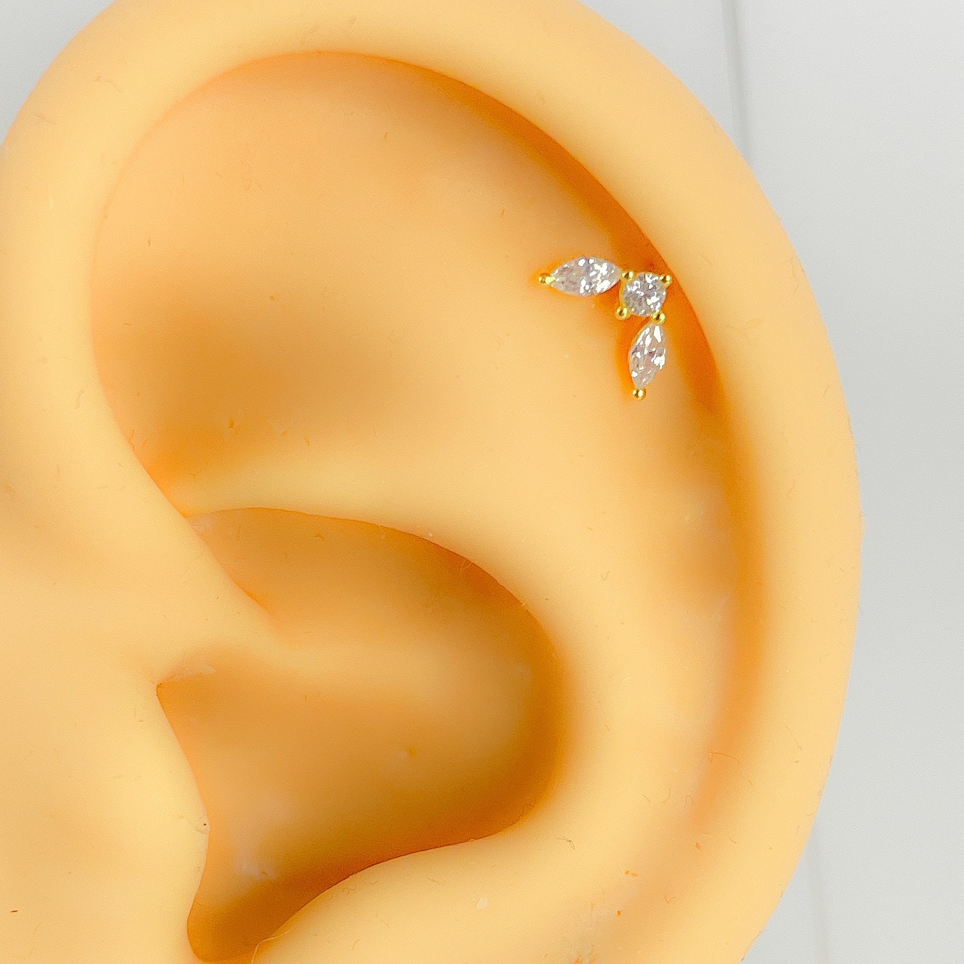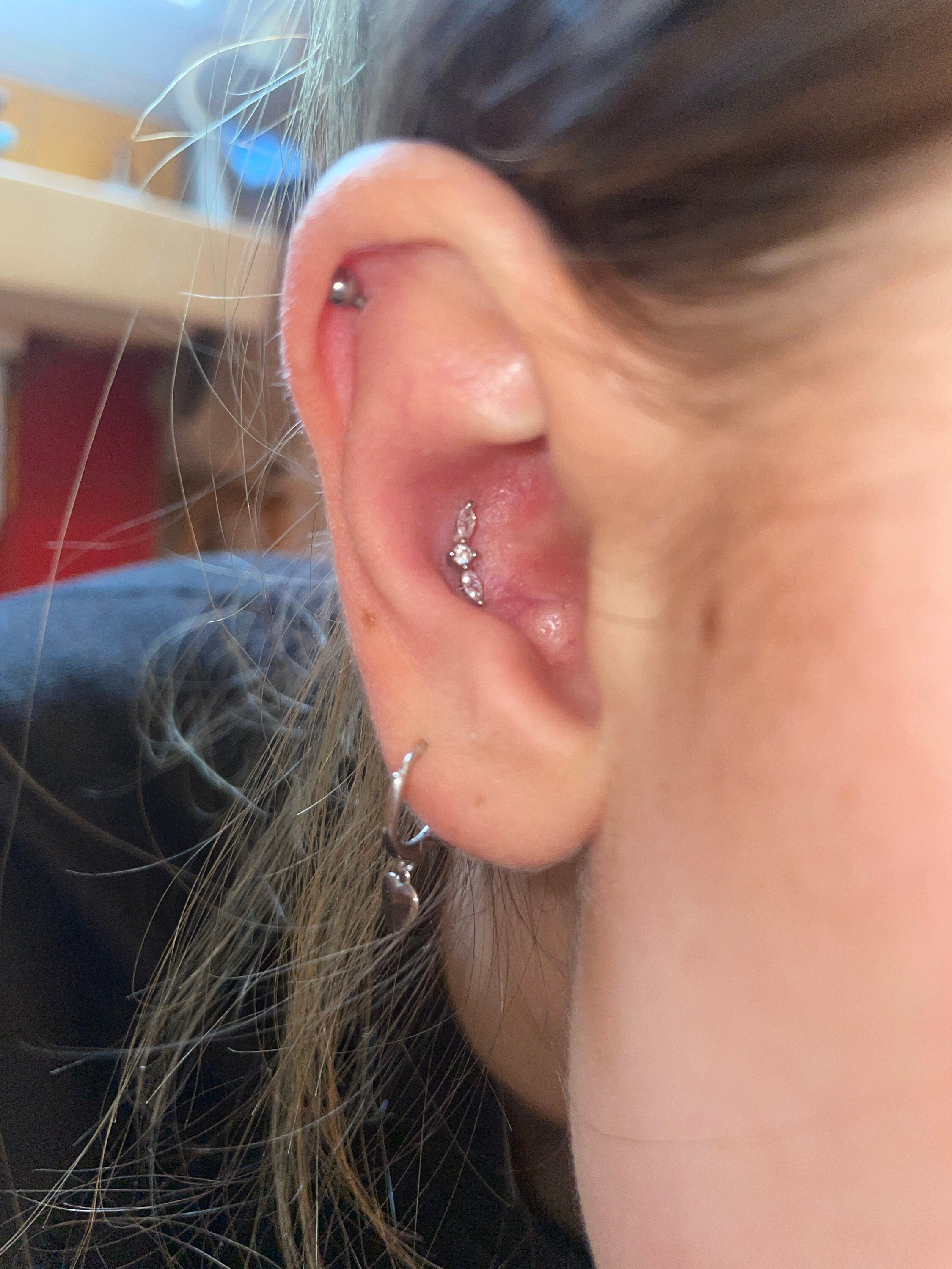 Piercing location: Helix Tragus Conch upper Helix