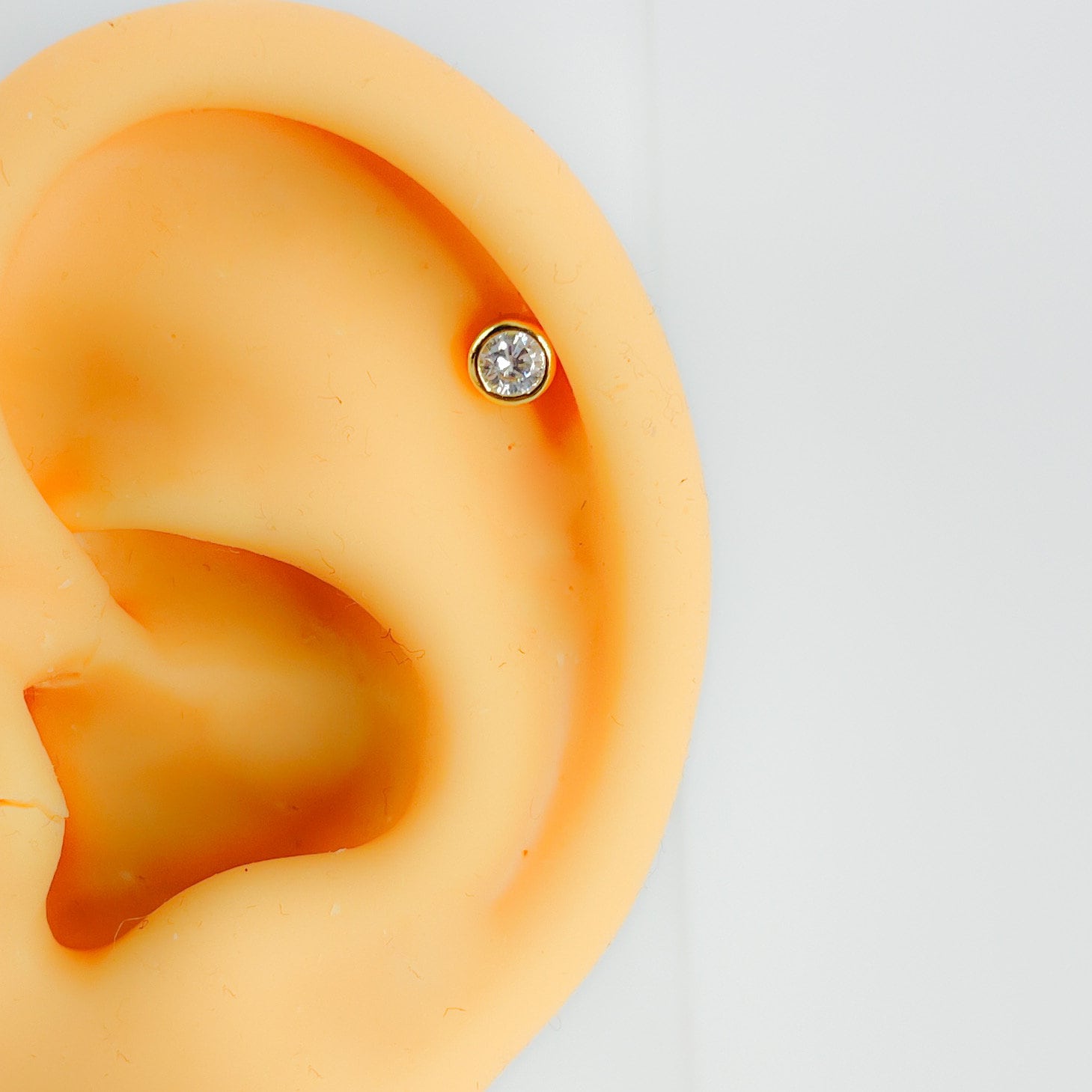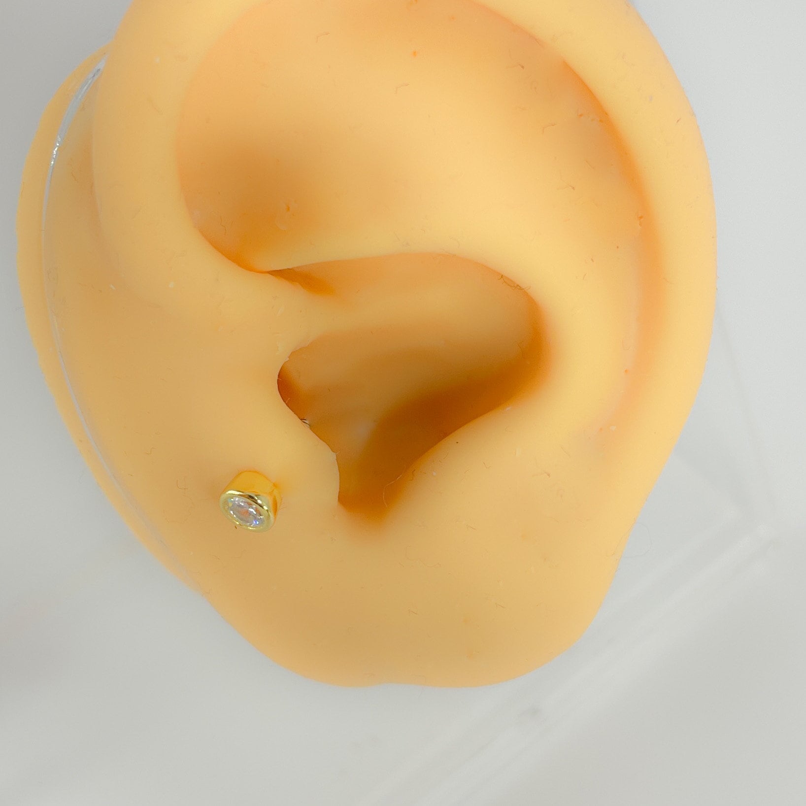 Piercing #229 925 Sterling Silver gold plated helix tiny stress crystal Tragus tiny