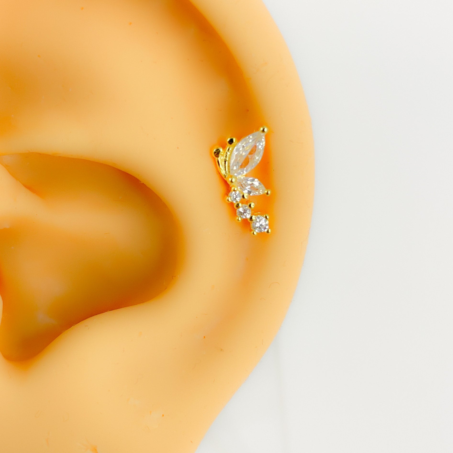Flat back Piercing #271 925 silver gold plated tragus helix conch gold butterfly dragonfly