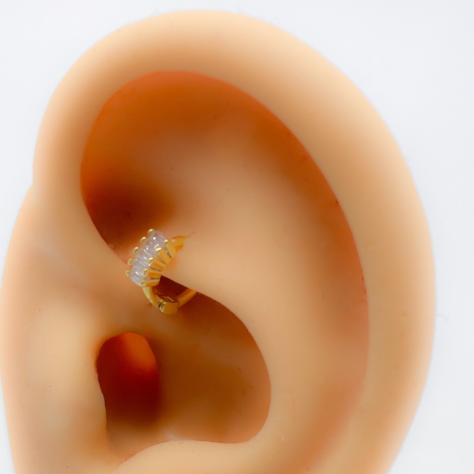 Helix piercing #259 925 silver gold plated Baguette mini hoop