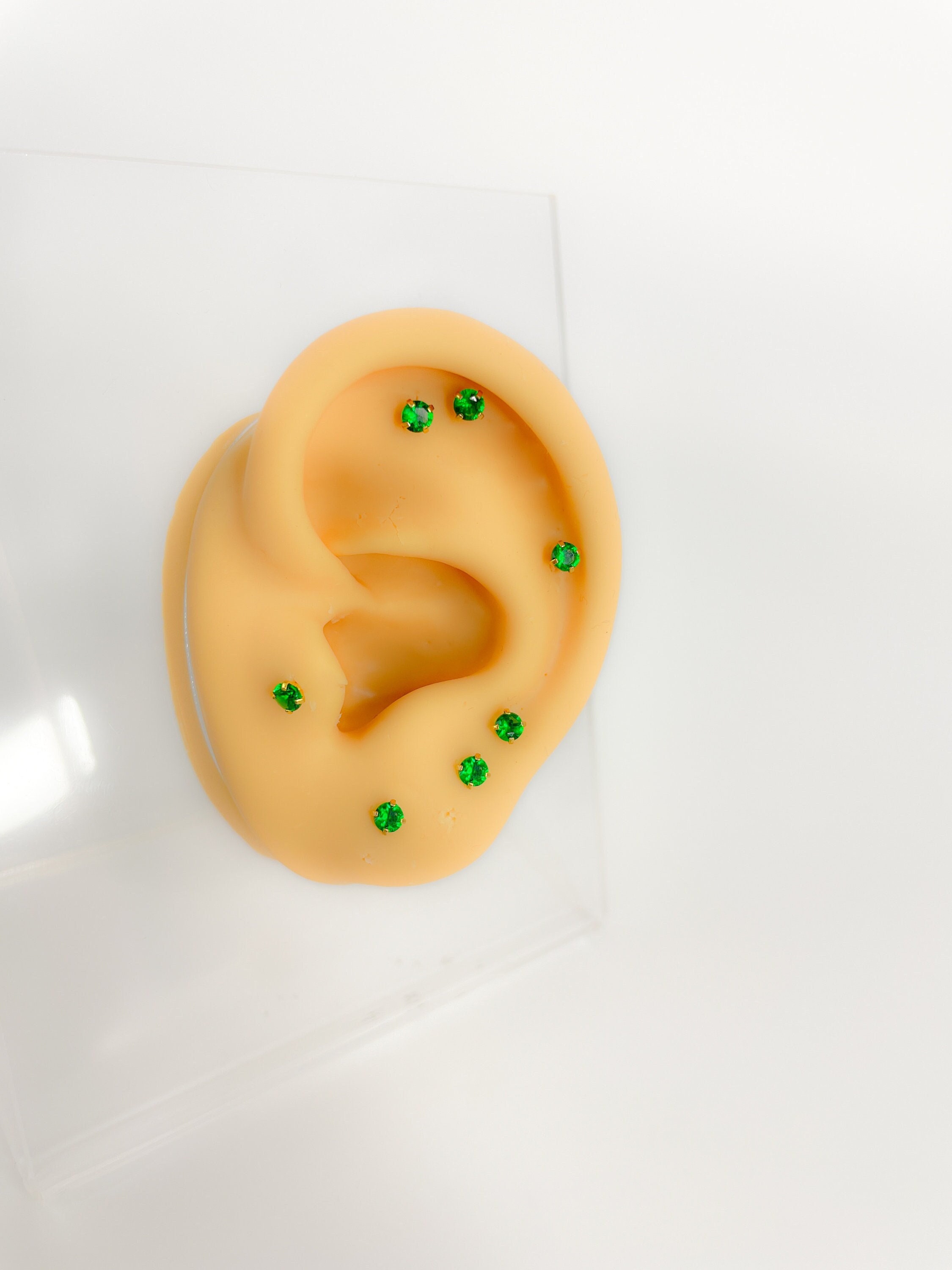 Helix Piercing #306 316l stainless steel gold plated green stud mini tiny green