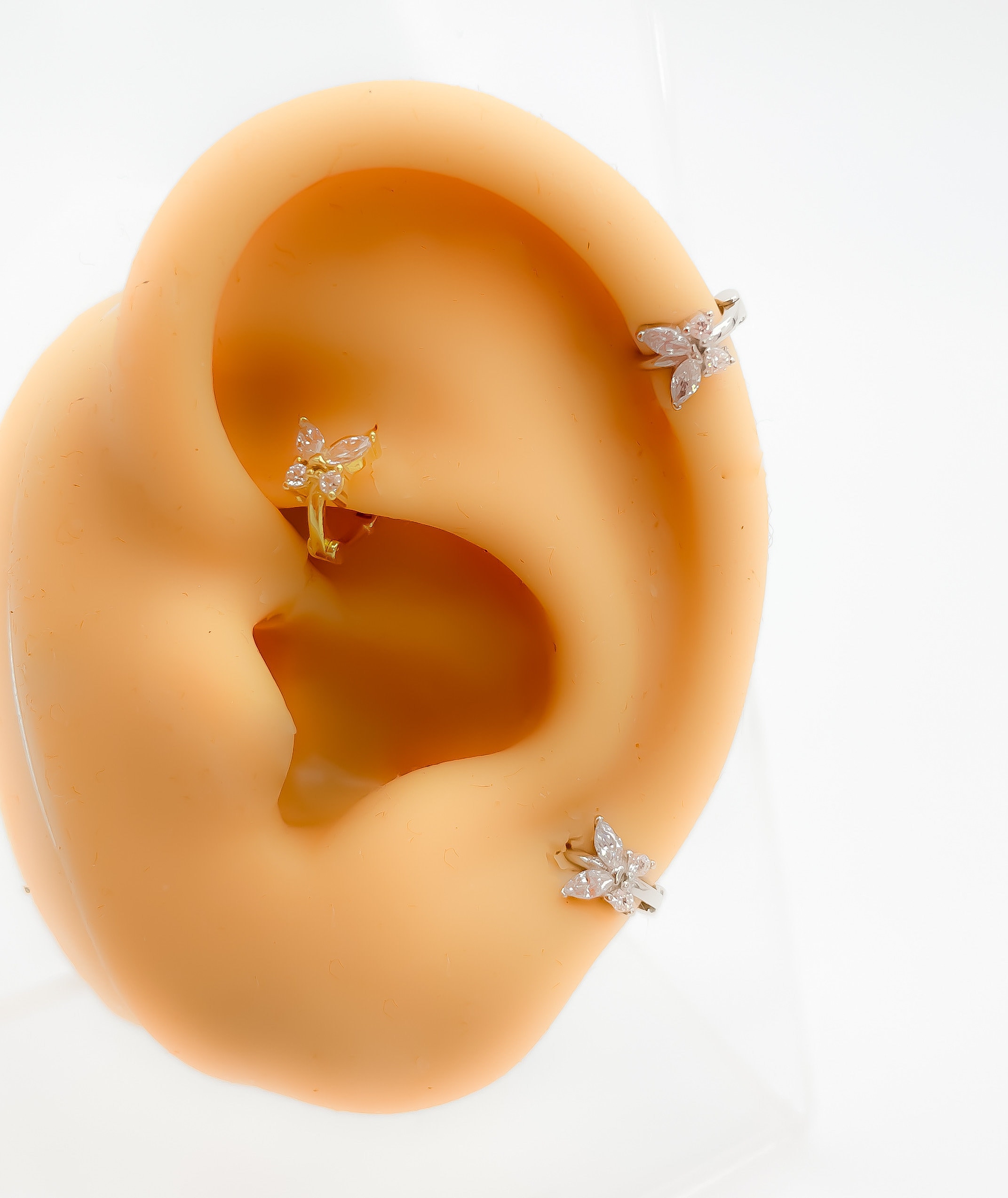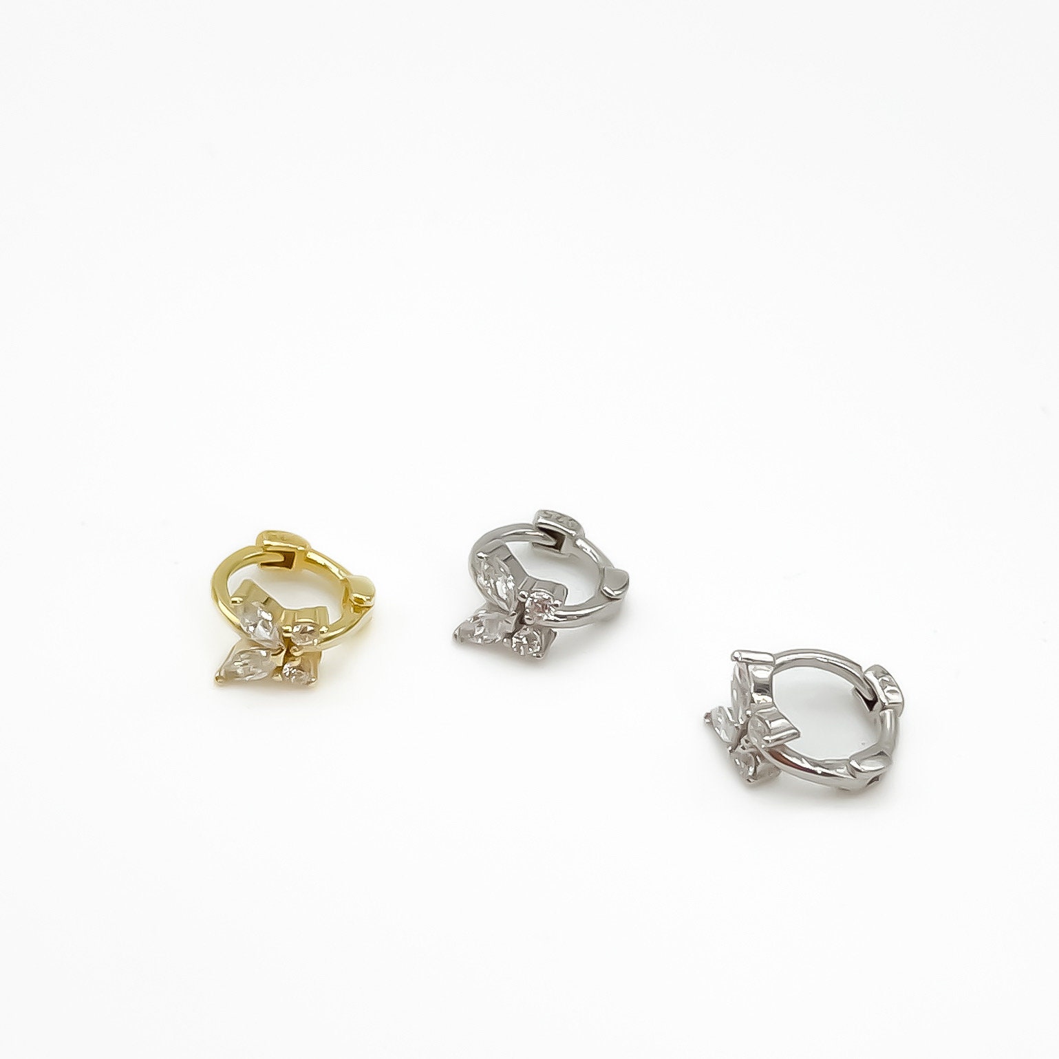 Mini piercing #316 rhinestone 925 silver or gold plated tiny hoop cartilage butterfly
