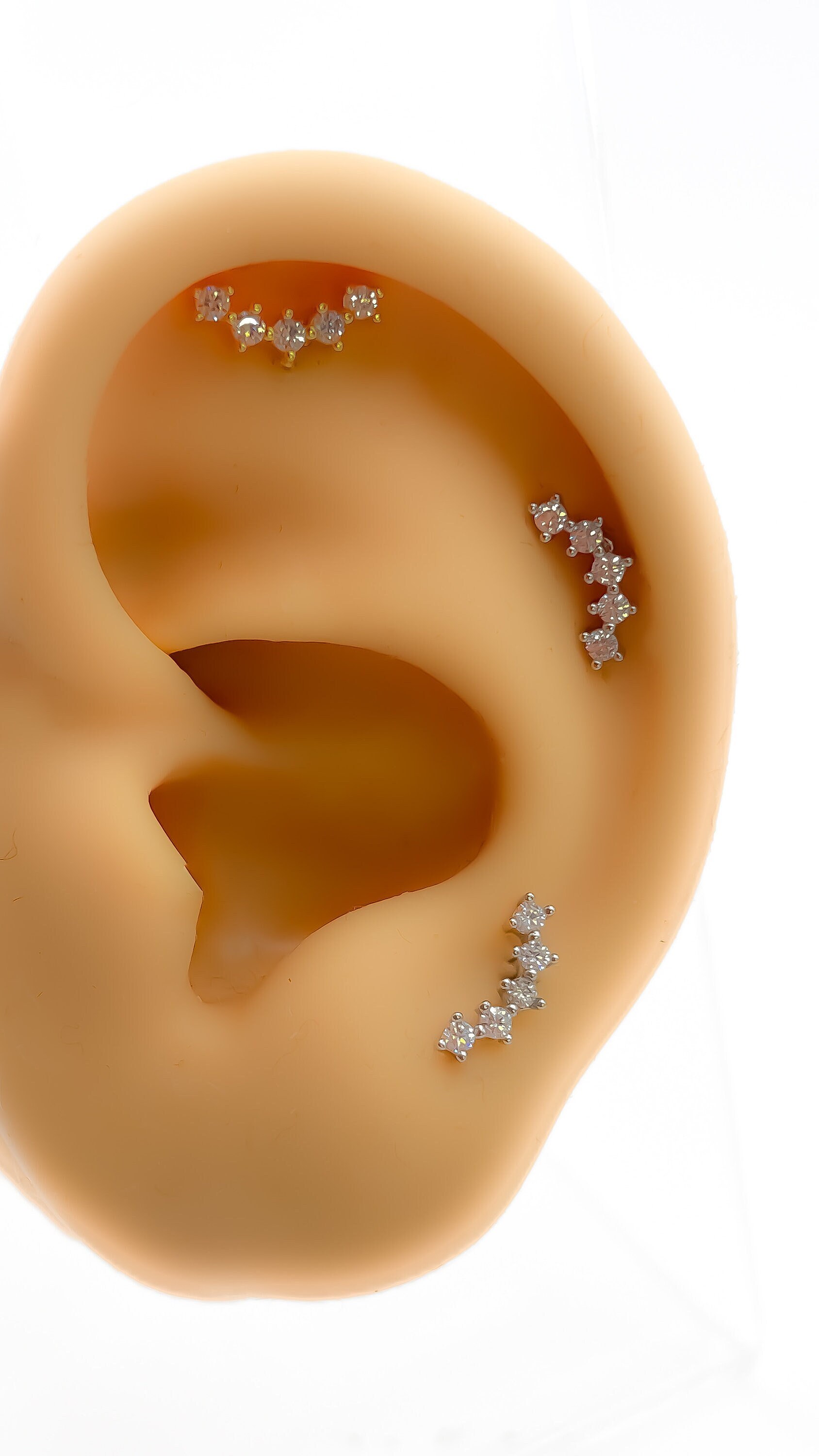 Flat back Helix #213 925 silver gold plated bow rhinestone piercing tragus cartilage