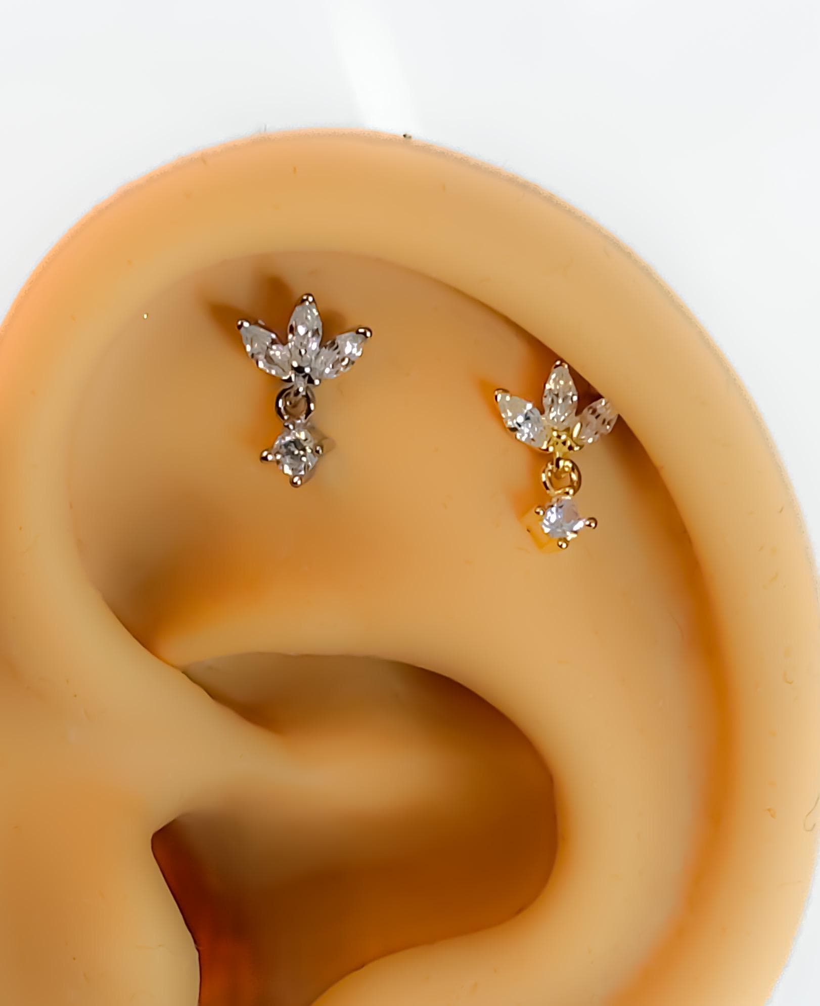 Piercing 925 silver gold plated lotus helix tragus flower rhinestone No.237