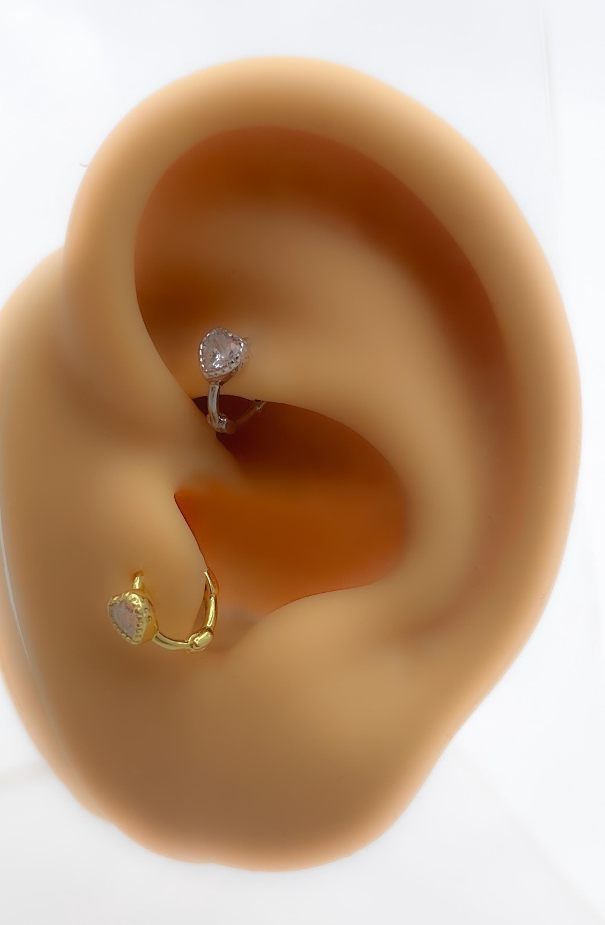 Piercing 330 Rhinestone 925 Silver Gold Plated Tiny Hoop Cartilage Earrings Heart Rook Helix