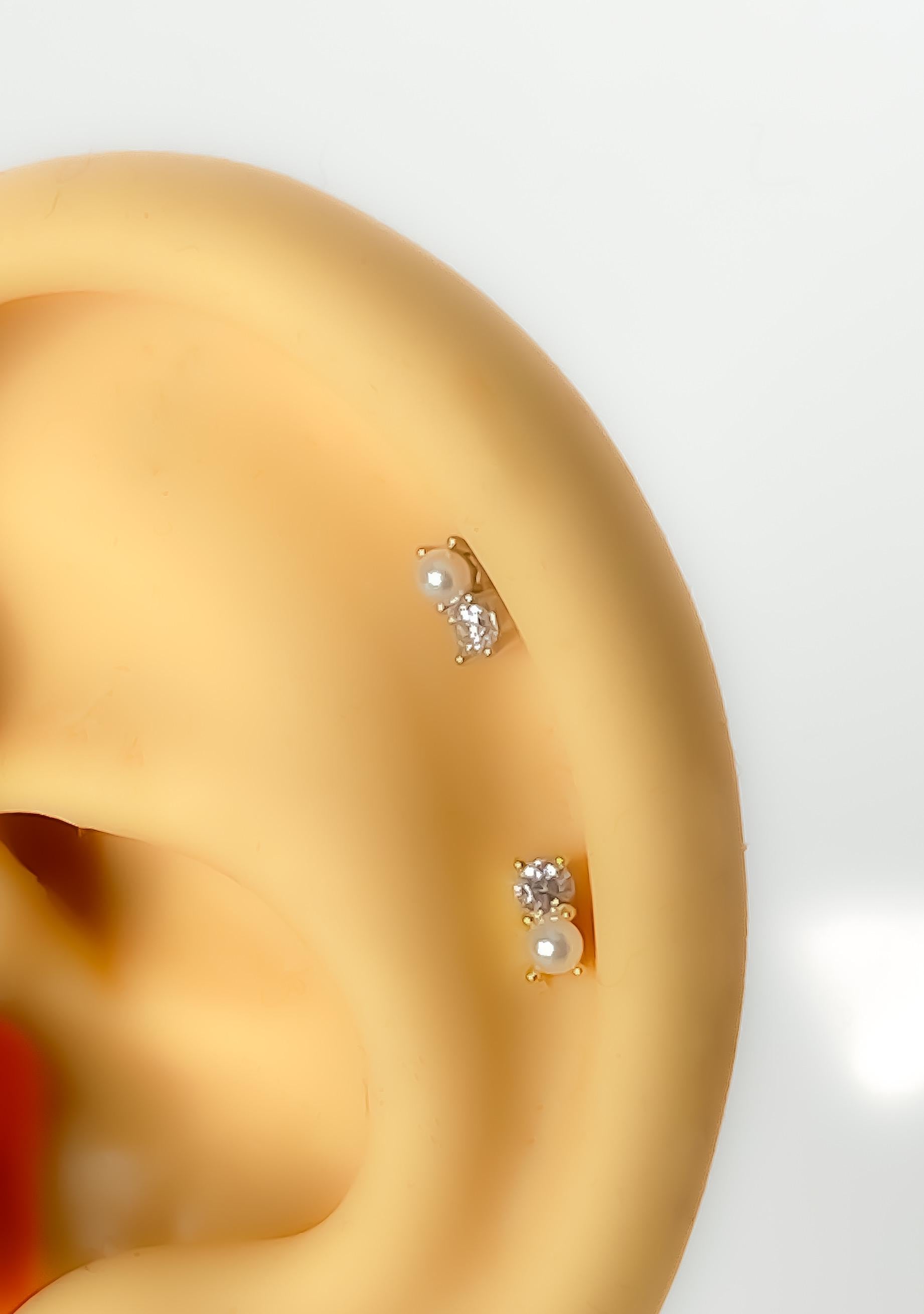 Piercing #234 925 silver gold plated cartilage helix tragus conch mini tiny stud with pearl