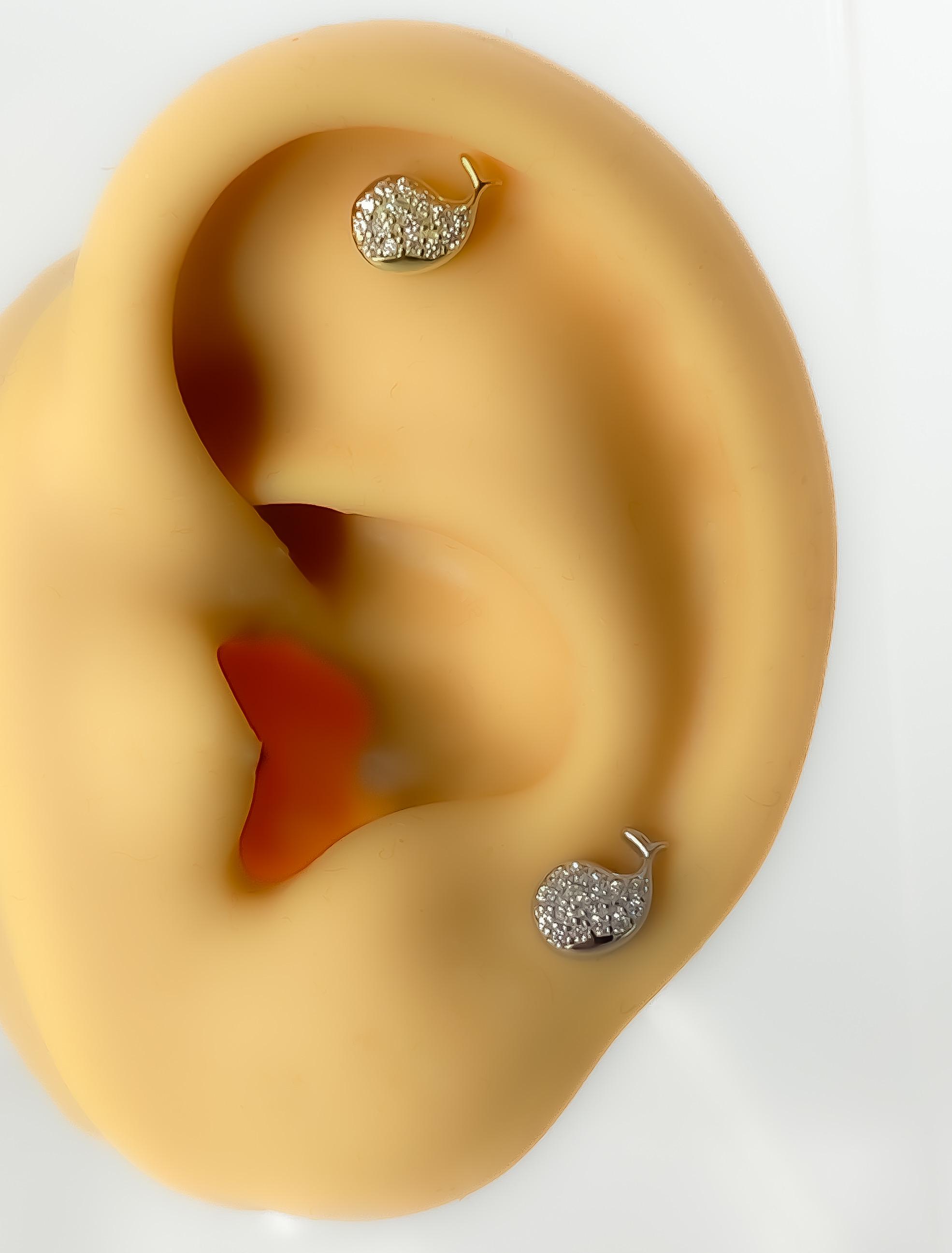 Piercing #236 925 silver gold plated cartilage helix tragus conch mini tiny stud dolphin fish whale