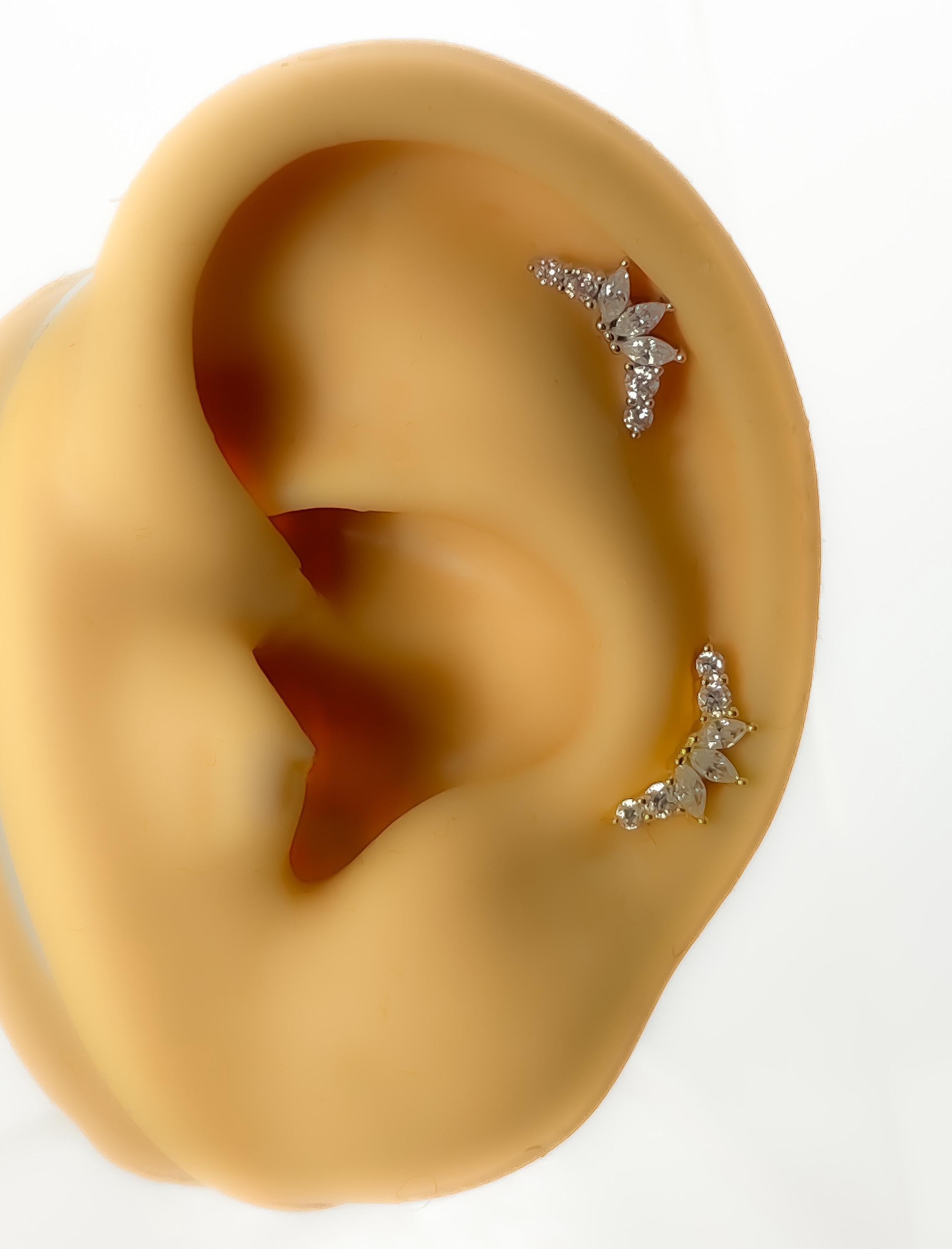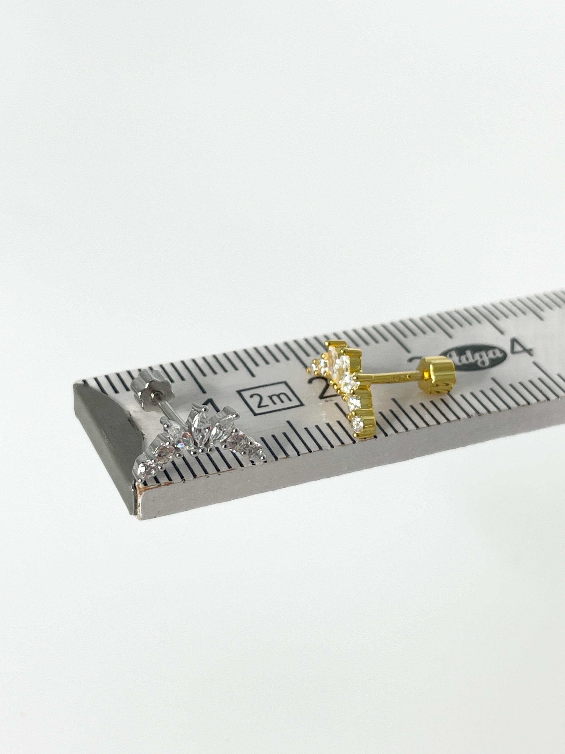 Piercing #253 925 silver gold plated cartilage helix rhinestone bow