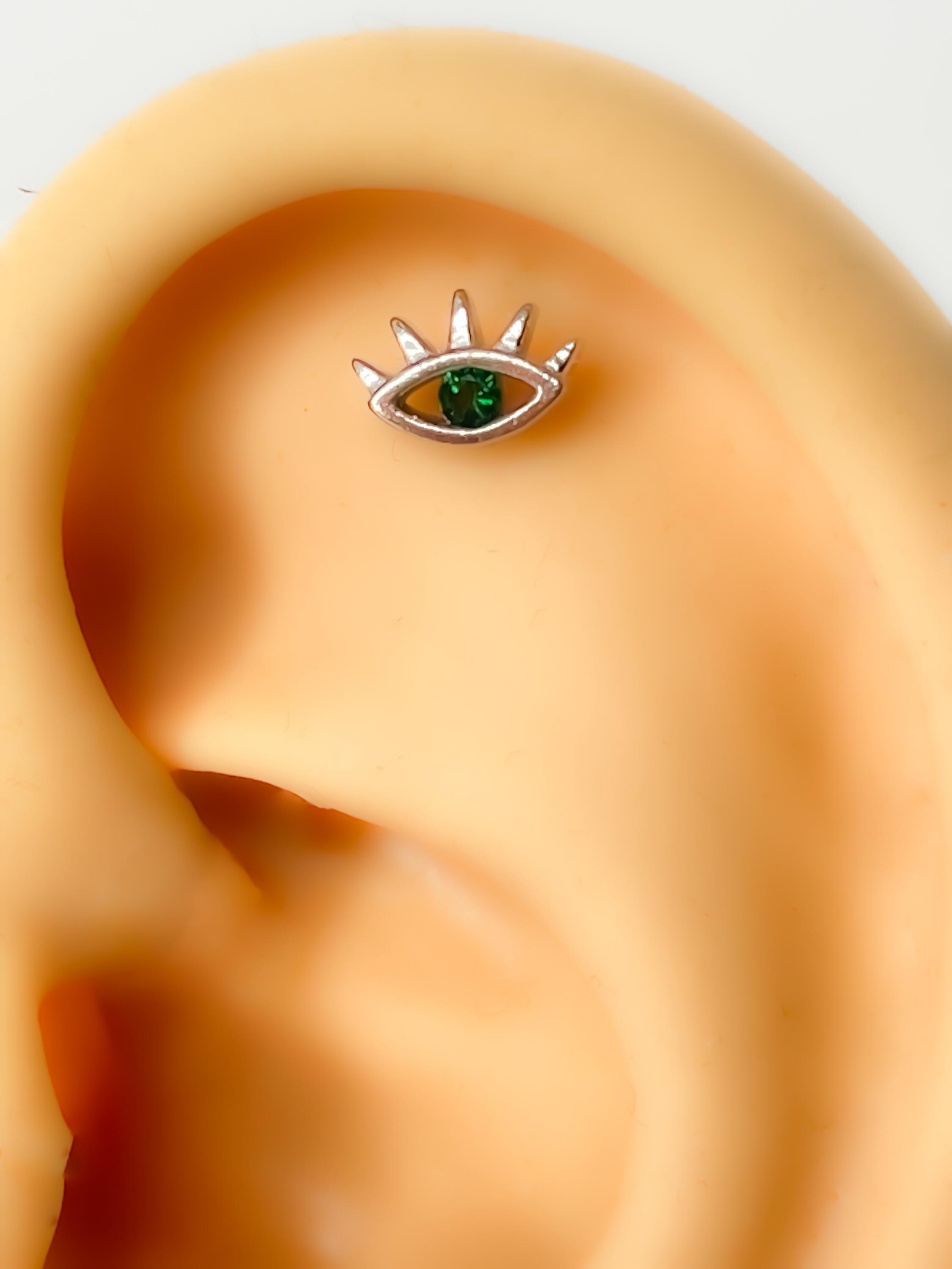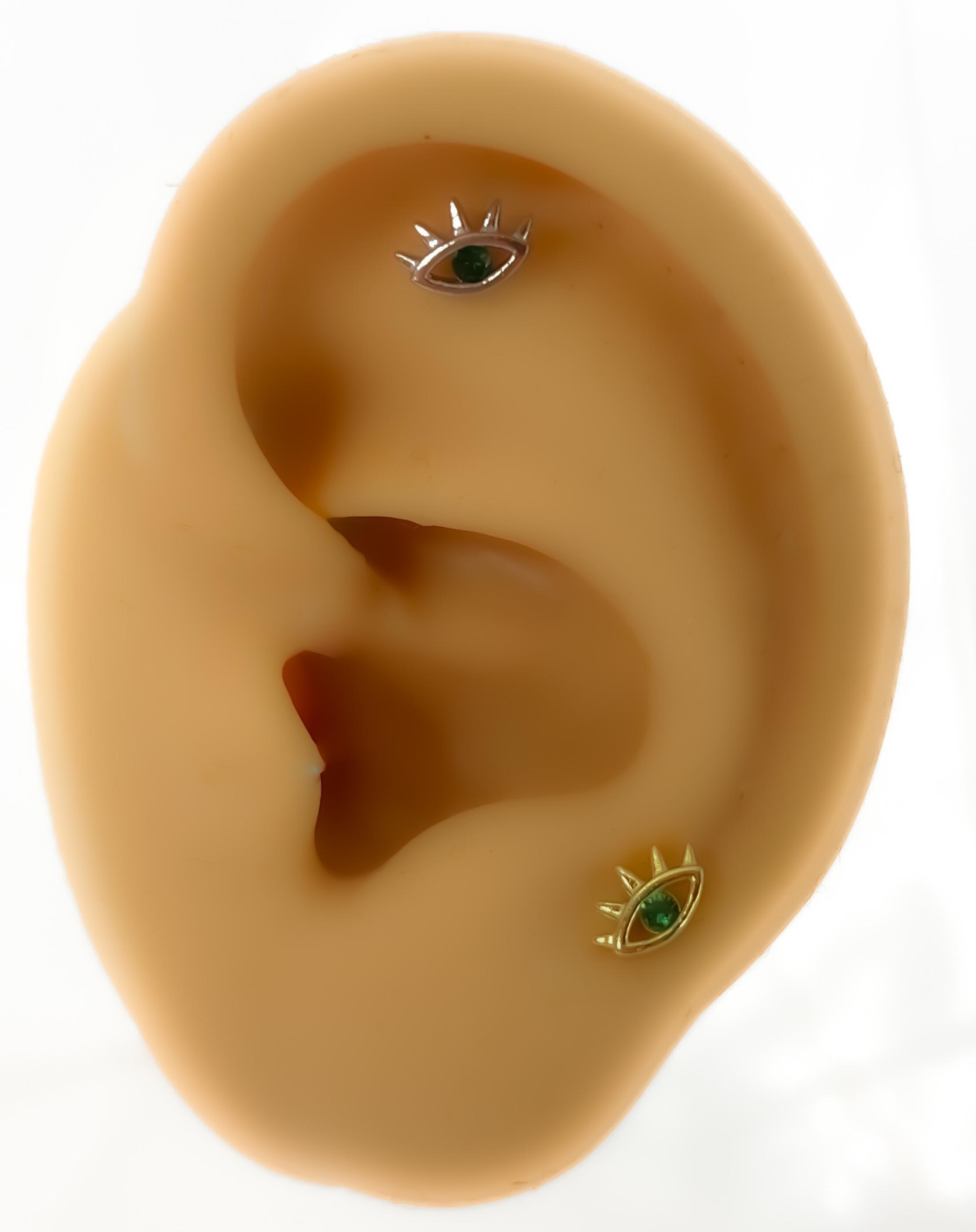 Piercing helix 255 eye evil eye green 925 silver gold-plated