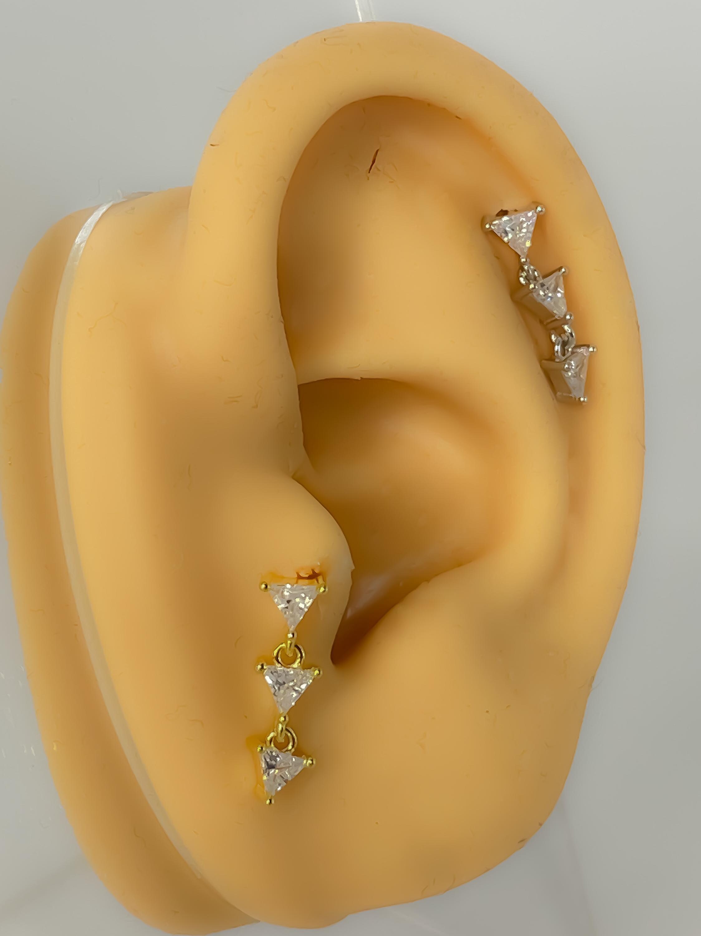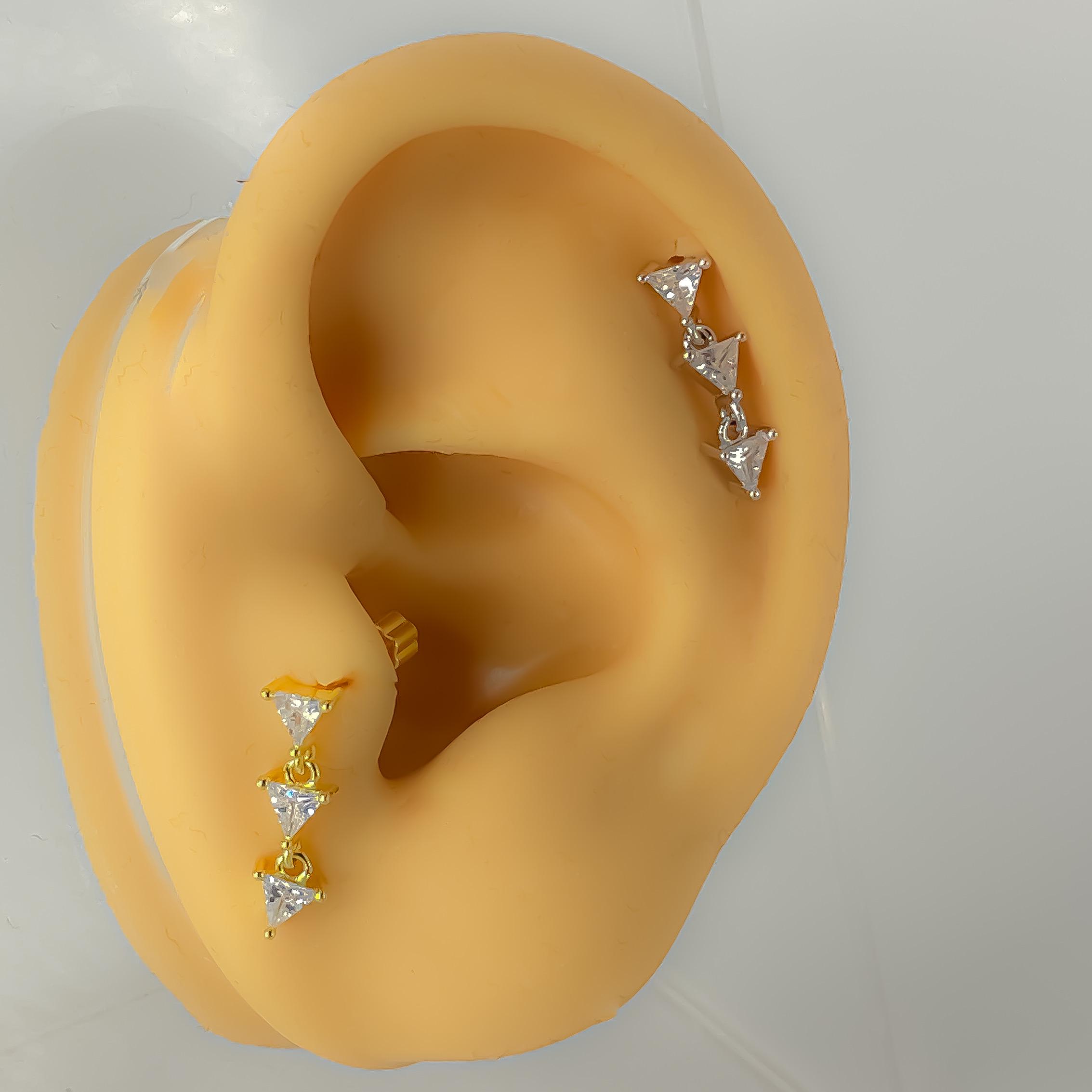 Piercing 294 triangle rhinestone helix 925 silver gold plated