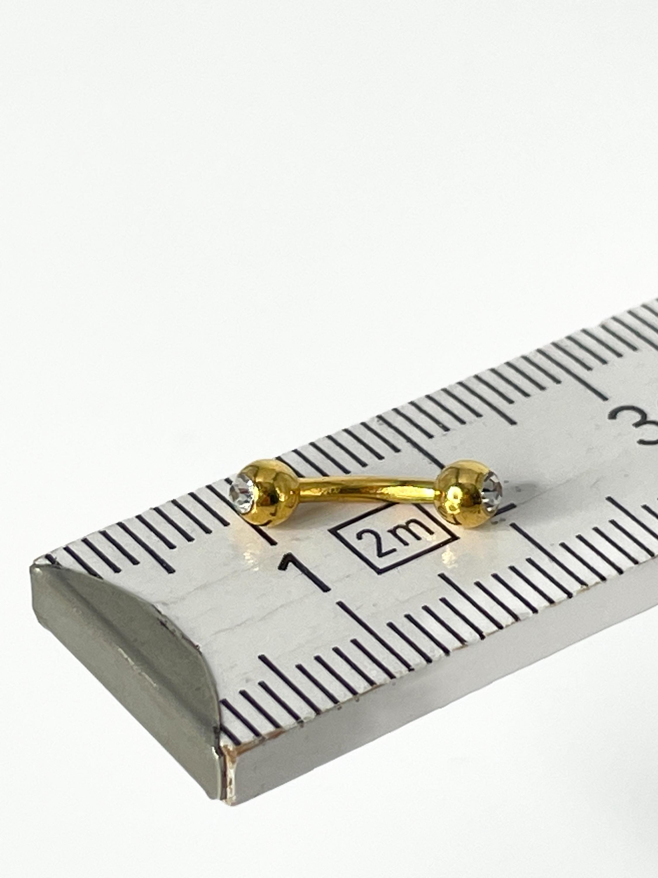 Piercing no.94 surgical steel rook cock barbell banana gold plated rhinestone